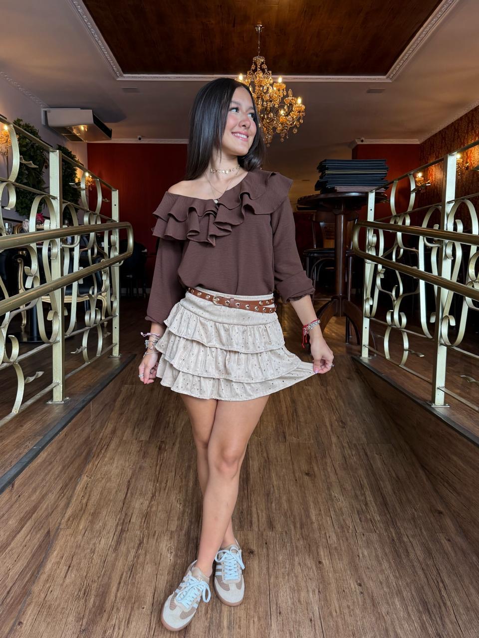 O romantismo da laise encontra a praticidade do shorts embutido nesta peça que foi feita para você se movimentar com liberdade (e muito estilo!). Por fora, camadas de saia laise leve e fluida; por dentro, shorts de malha macia que garante segurança total em qualquer rolê, furinhos delicados criam textura fashion sem abrir mão do conforto stretch da malha. Veste direitinho, não aperta e ainda valoriza a silhueta, os babados dão volume e movimento extra, deixando o look supergirly.